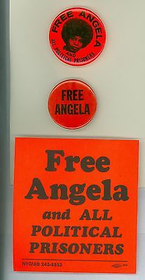 2 Vintage 1970s CPUSA Free Angela Davis Political Pinback Buttons &1 Sticker