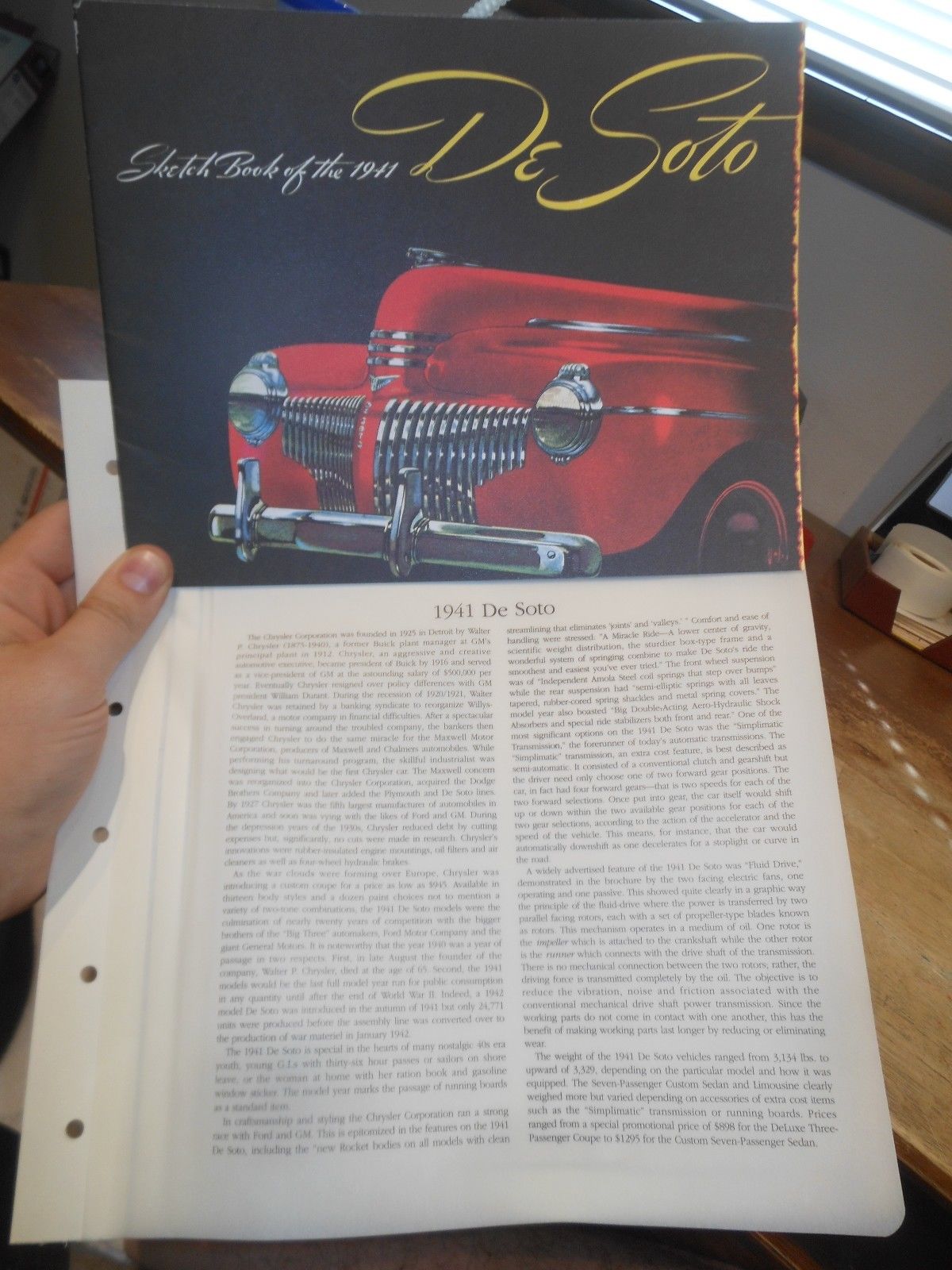 1941 Chrysler De Soto Antique Car Automobile Sketch Book Picture Drawing Plans