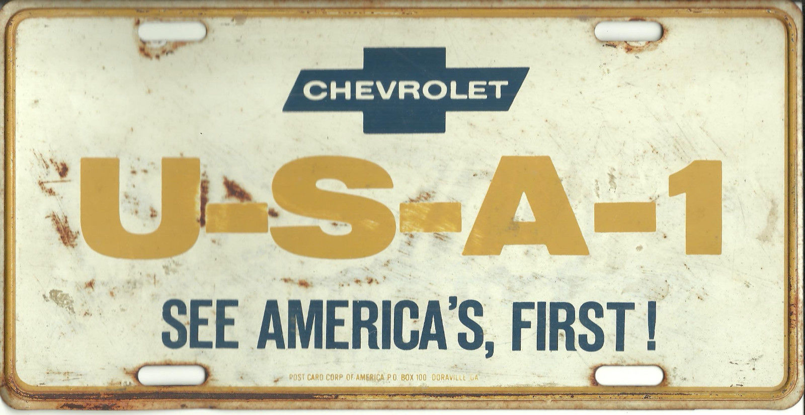 Vintage Metal Car Tag Chevrolet U-S-A-1 See America''s, First!