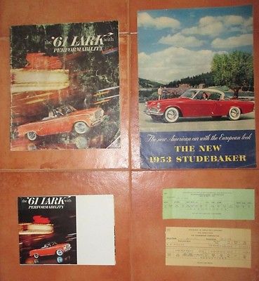 Title (ebay affiliate link): ''61 Lark & ''53 Studebaker Brochures + 2 Paycheck Stubs ''60 & ''53 South Bend, IN