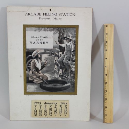 Title (ebay affiliate link): 1923 Antique Maine Automobile Motorcycle Gas Station Advertising Calendar Print