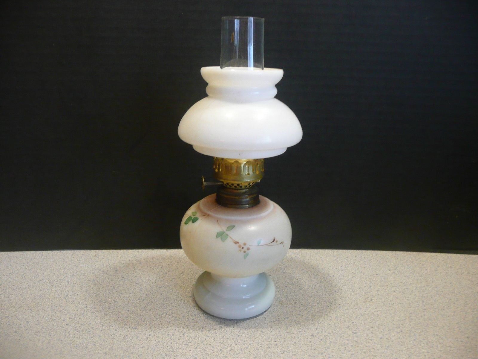 Antique Miniature hand painted milk glass Oil or Kerosene Lamp - hornet burner