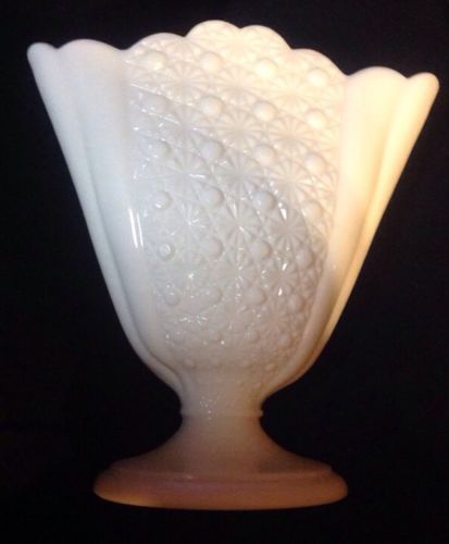 Vintage Fenton Milk Glass Fan Vase Daisy Button Design
