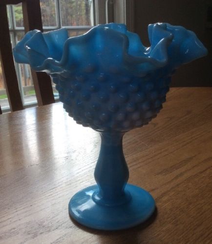Fenton Blue White Slag Milk Glass Hobnail Compote