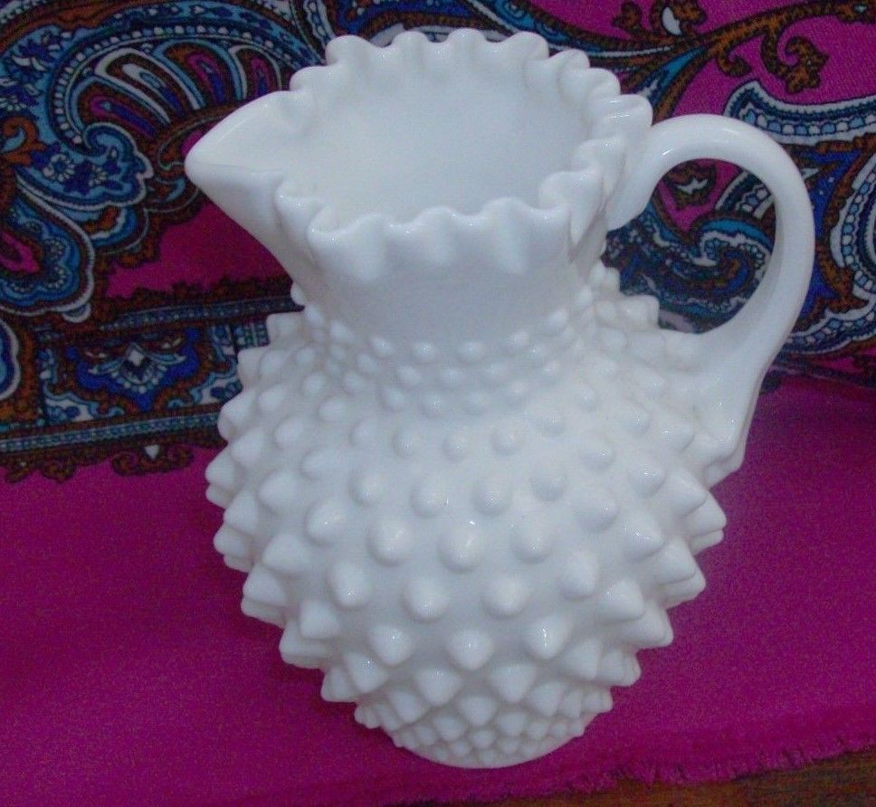 Vintage Fenton Milk Glass Hobnail Syrup Pitcher