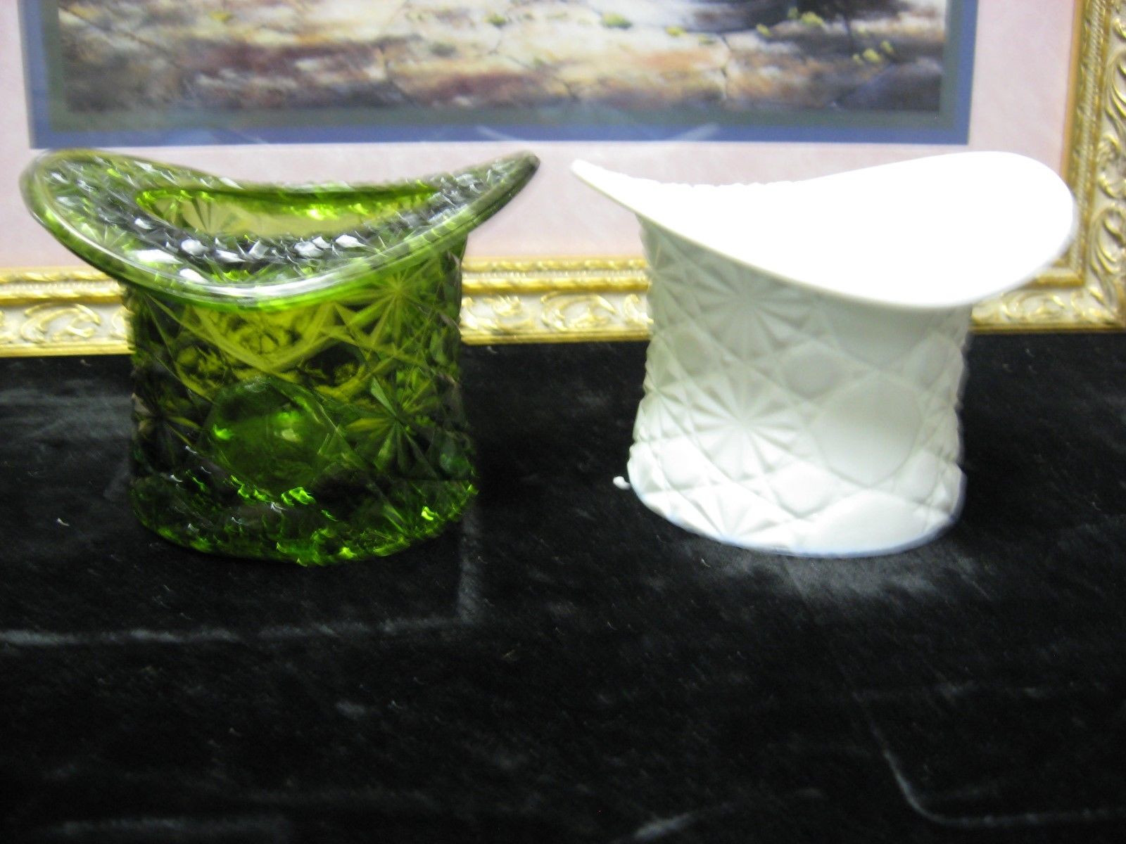 Title (ebay affiliate link): Vintage Beautiful Fenton Green & Milk Glass White Moon and Stars Top Hat