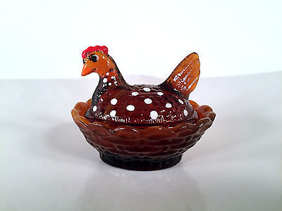 Boyd Brown Painted Milk Glass Chicken Covered Salt