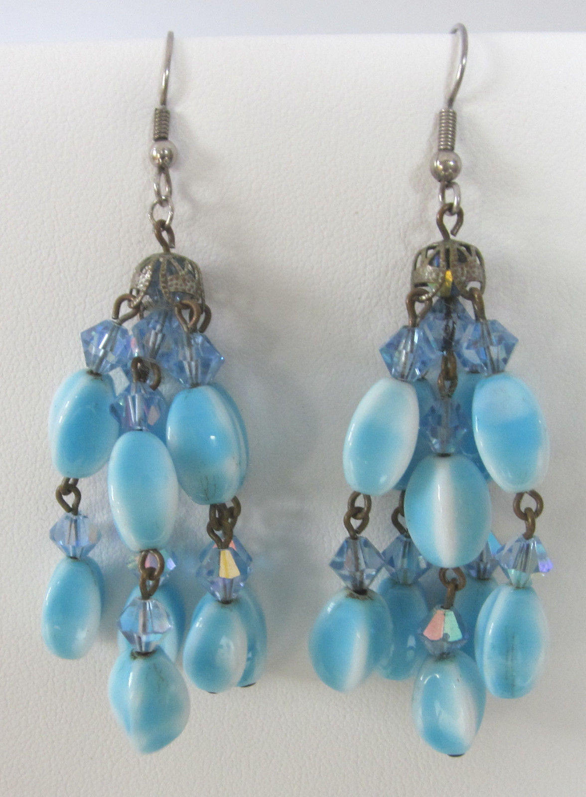 Vintage Dangling Blue Milk Glass Bead Pierced Earrings