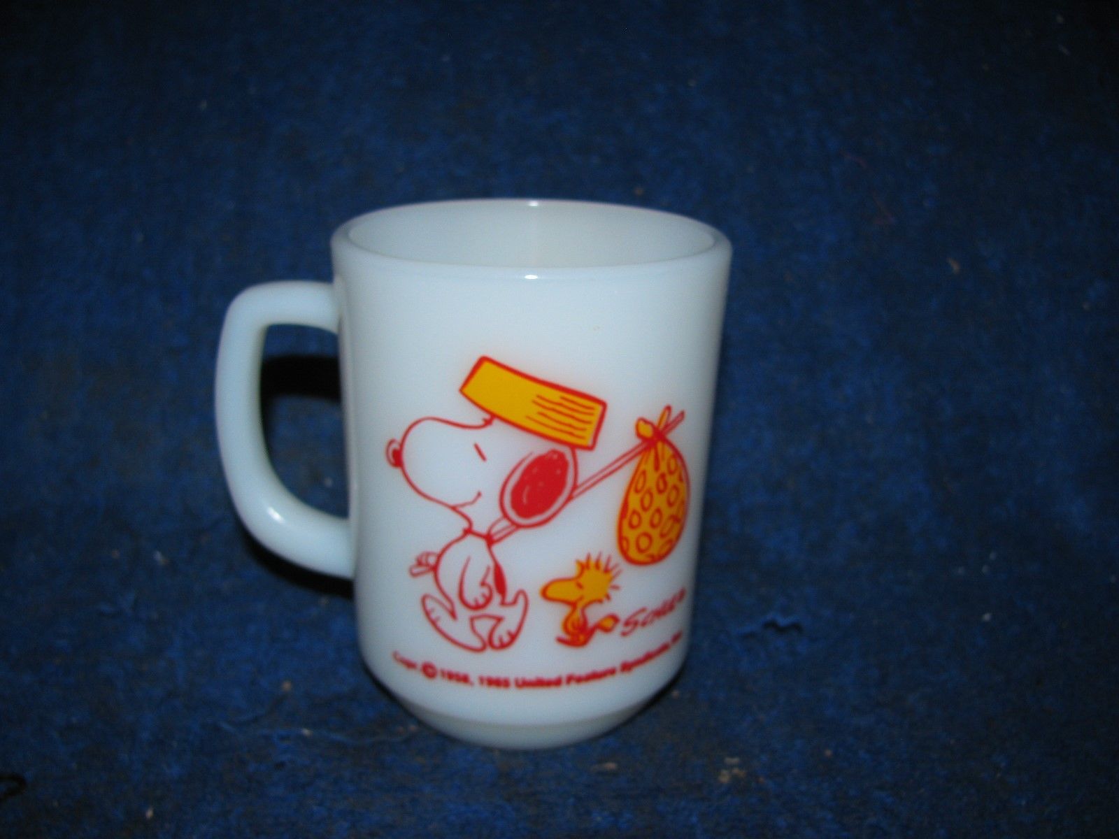 Title (ebay affiliate link): Snoopy Come Home Fire King Anchor Hocking Milk Glass Collectible Mug Vintage