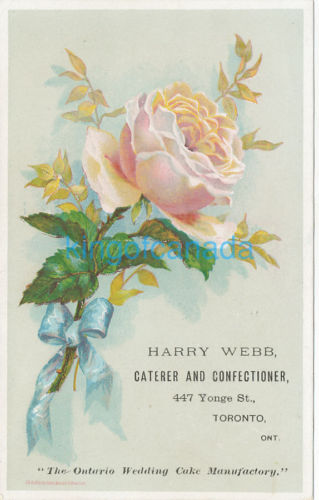 Title (ebay affiliate link): Canada Toronto Harry Webb Catering Wedding Cakes 447 Yonge St Trade Card 1890