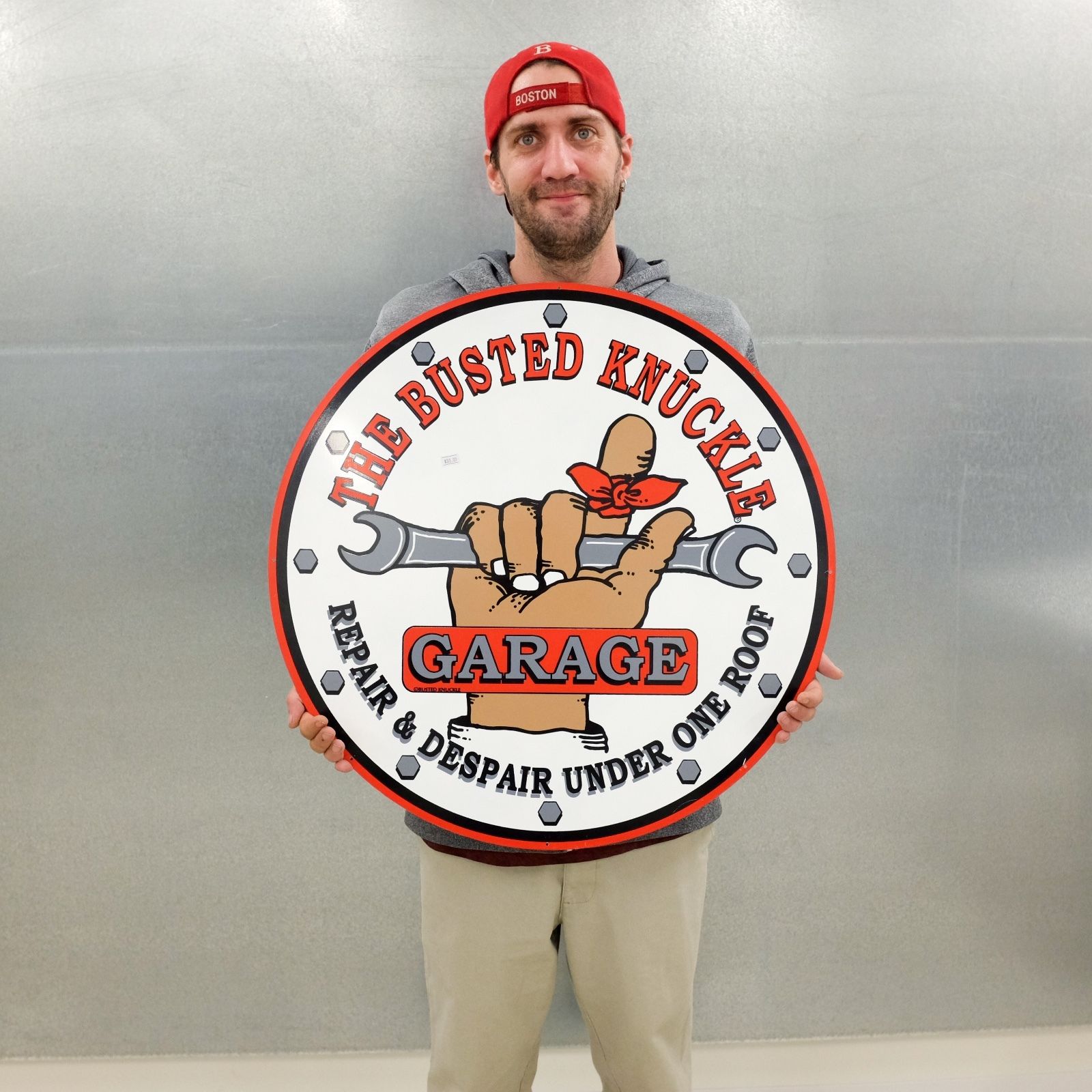 Title (ebay affiliate link): Busted Knuckle Garage Metal Sign Vintage-Style Reproduction 25.5"