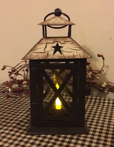 Title (ebay affiliate link): PRIMITIVE CRACKLE LANTERN FLAMELESS CANDLE TAN BLACK STAR COUNTRY DECOR