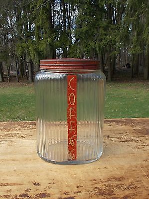 Antique Old Glass Farm House General Store Display Coffee Jar Canister With Lid