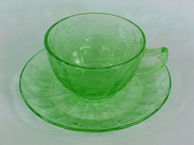 Title (ebay affiliate link): FLORAL Poinsettia Jeannette Green Depression Cup Saucer