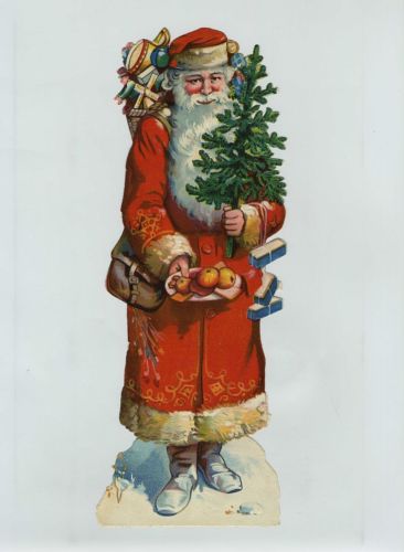 Title (ebay affiliate link): Beautiful 1800''s Christmas Die Cut Embossed Santa Claus Figure Tree Toys cv8448
