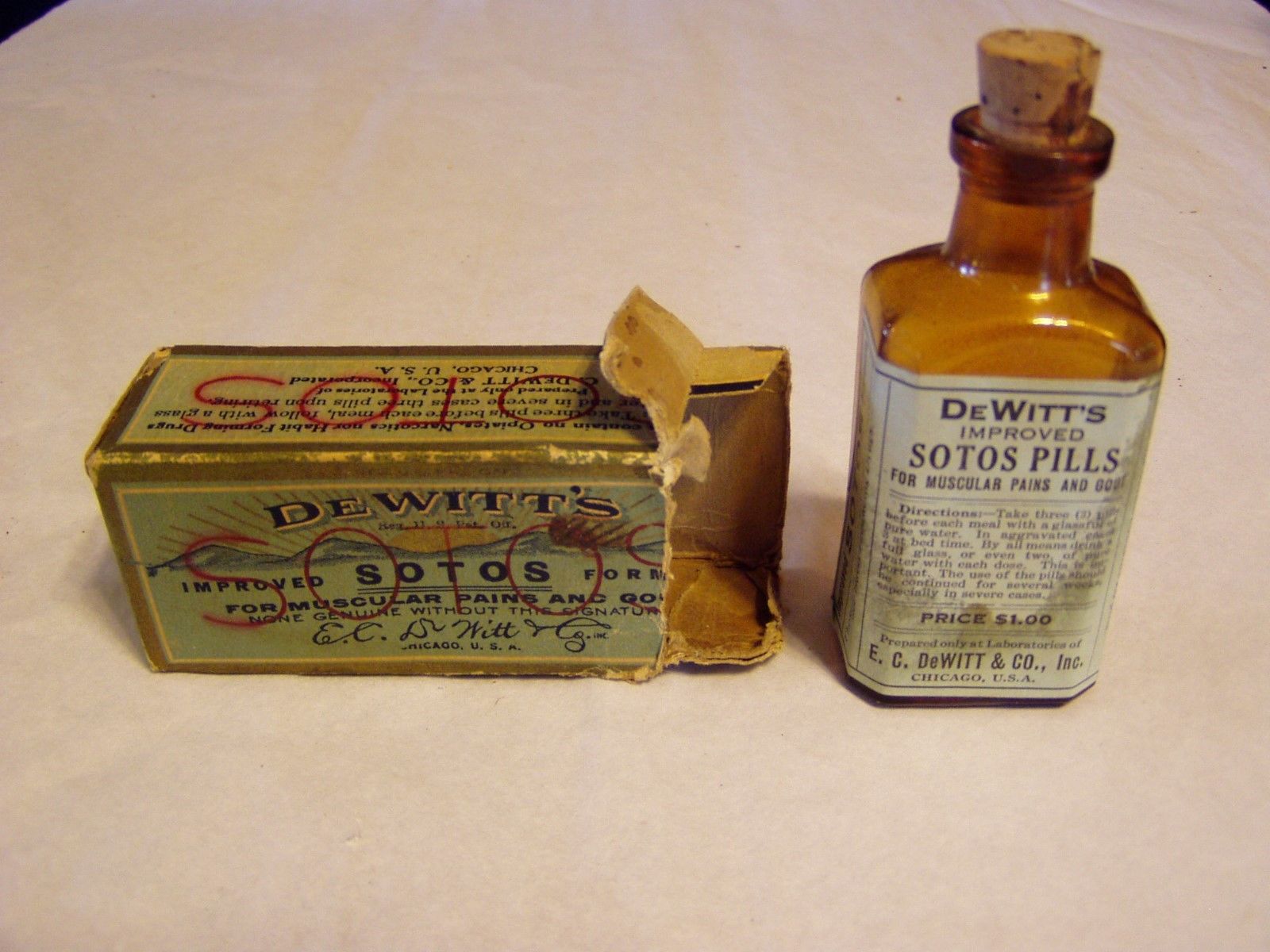 Title (ebay affiliate link): RARE VINTAGE BOXED DeWITT''S SOTOS PILLS DeWITT & CO MEDICINE APOTHECARY BOTTLE