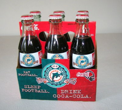 Title (ebay affiliate link): 6 COKE 25th Anniversary DOLPHINS Perfect SEASON Bottles