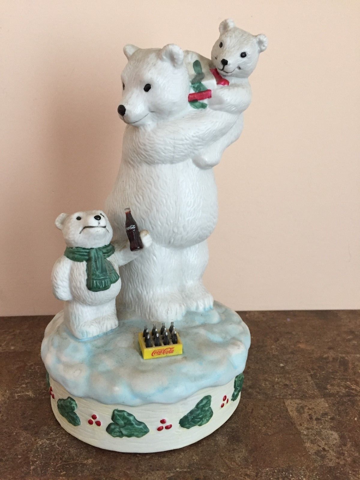 Title (ebay affiliate link): COCA-COLA TOWN SQUARE COLLECTION MUSIC BOX MOTHER BEAR AND TWO CUBS 1996