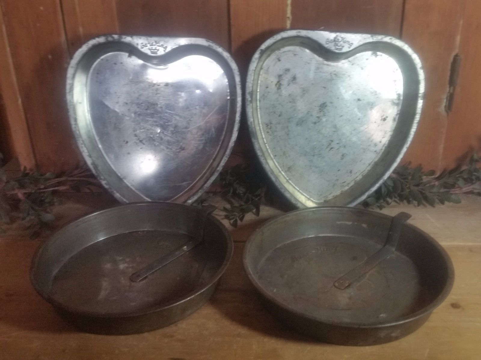 Title (ebay affiliate link): Primitive 2 Heart Bake King & 2 Bake King Round Cake Pans Vintage Farm Kitchen