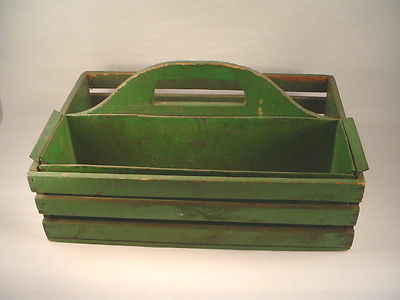 Title (ebay affiliate link): ~ Vtg RUSTIC GREEN PAINT PRIMITVE WOOD & METAL TRAY GARDEN TOTE TOOL CADDY