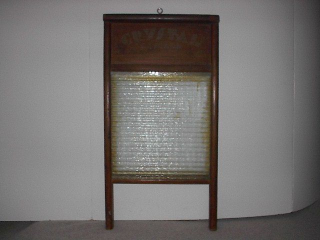 Title (ebay affiliate link): ANTIQUE VINTAGE WOOD & GLASS WASHBOARD CRYSTAL CASCADE