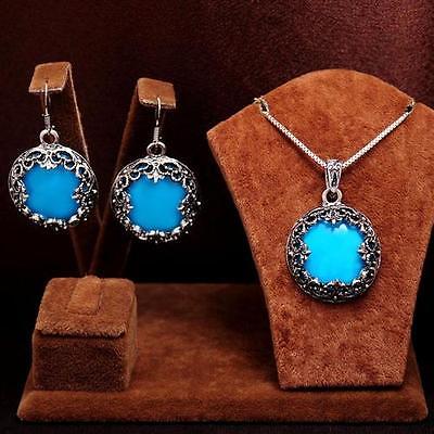 2PCS blue round Design antique silver Necklace eardrop Jewelry Set Women''s gift
