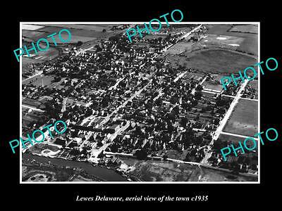 OLD LARGE HISTORIC PHOTO OF LEWES DELAWARE, AERIAL VIEW OF THE TOWN c1935
