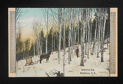 1910s Gathering Sap Birch Maple Syrup Sugar Horse Vat Sled Bethlehem NH Grafton