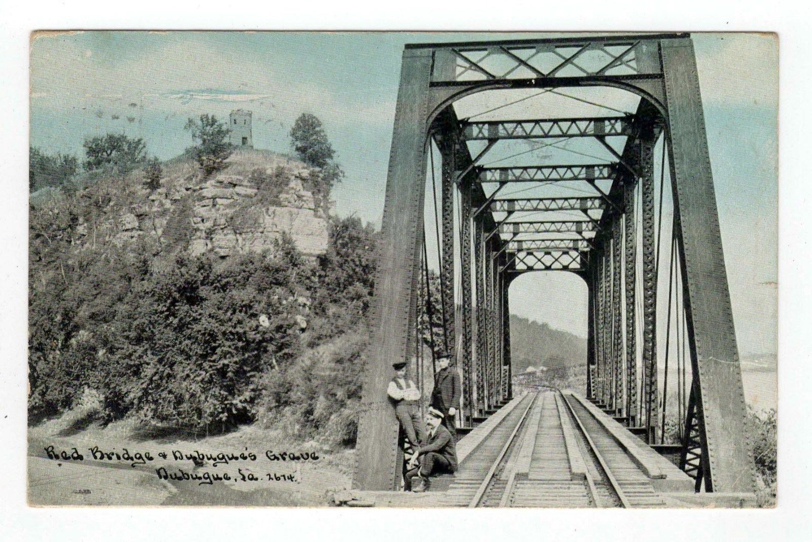Vintage Postcard Red Bridge & Dubuque''s Grave Dubuque IA 1909