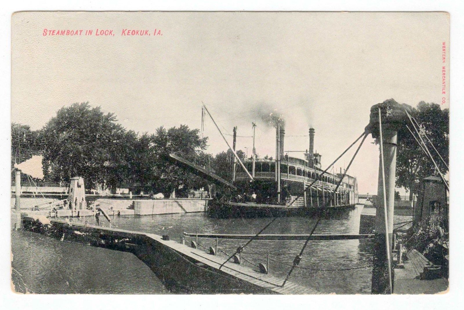 Vintage Postcard Steamboat In Lock Keokuk Iowa by Western Mercantile Company