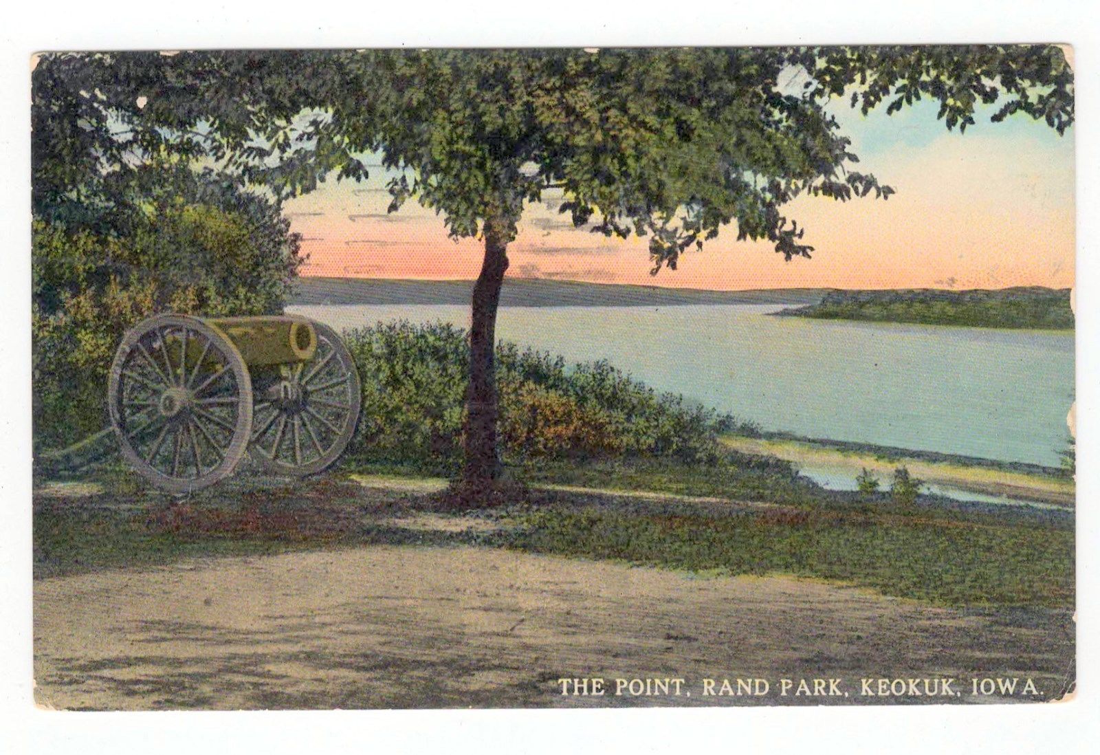 Vintage Postcard The Point Rand Park Cannon Keokuk Iowa 1914