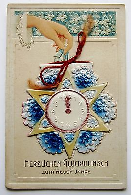 Unusual Novelty HAND & Midnight NEW YEAR Clock EMBOSSED Postcard Opens