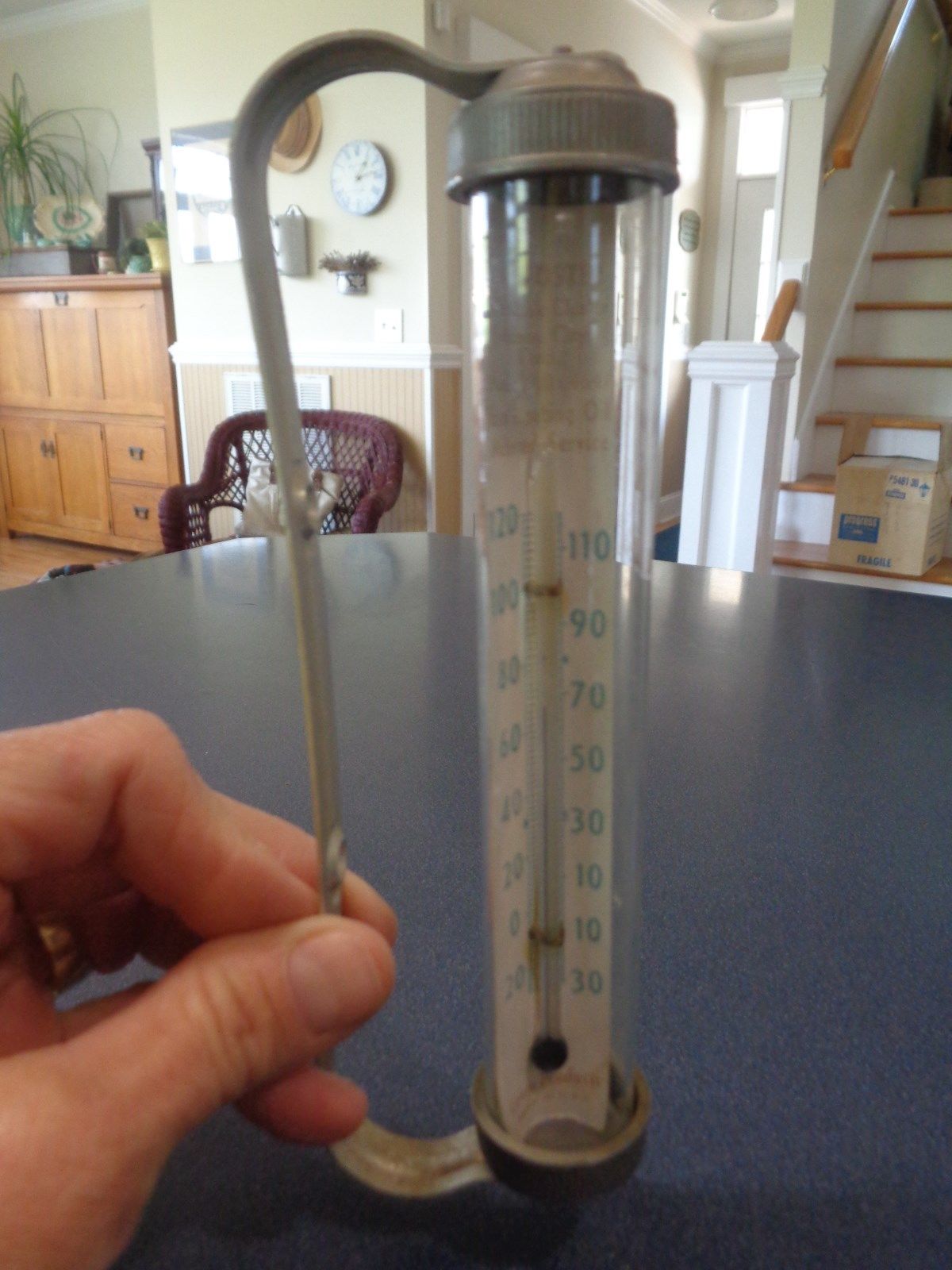 VINTAGE ADVERTISING SWIVEL GLASS TUBE THERMOMETER ~ ESSO OIL ~ JOHNSON CITY, TN