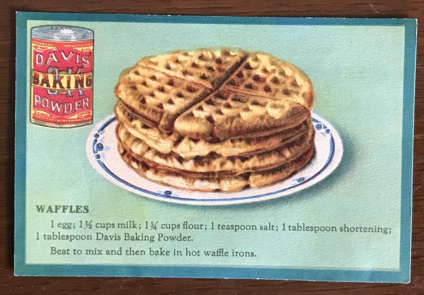 Title (ebay affiliate link): Davis Baking powder victorian trading card with Waffles recipe / A38