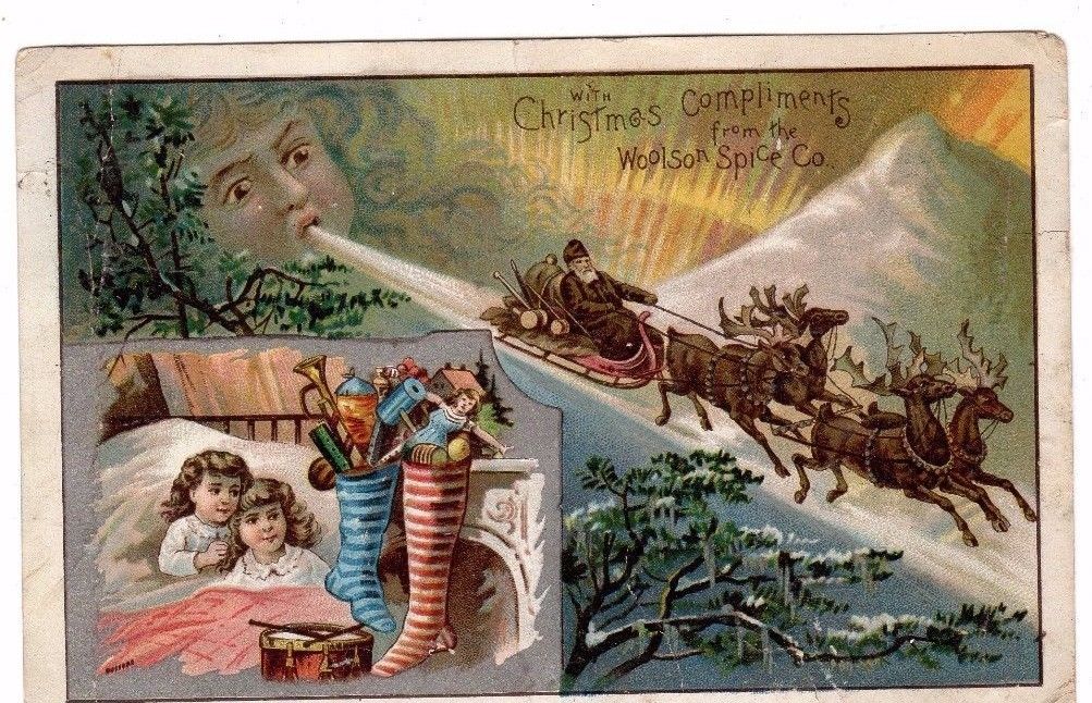 Title (ebay affiliate link): BIG 1800''S LION COFFEE / WOOLSON SPICE/ SANTA CHRISTMAS - VICTORIAN TRADE CARD