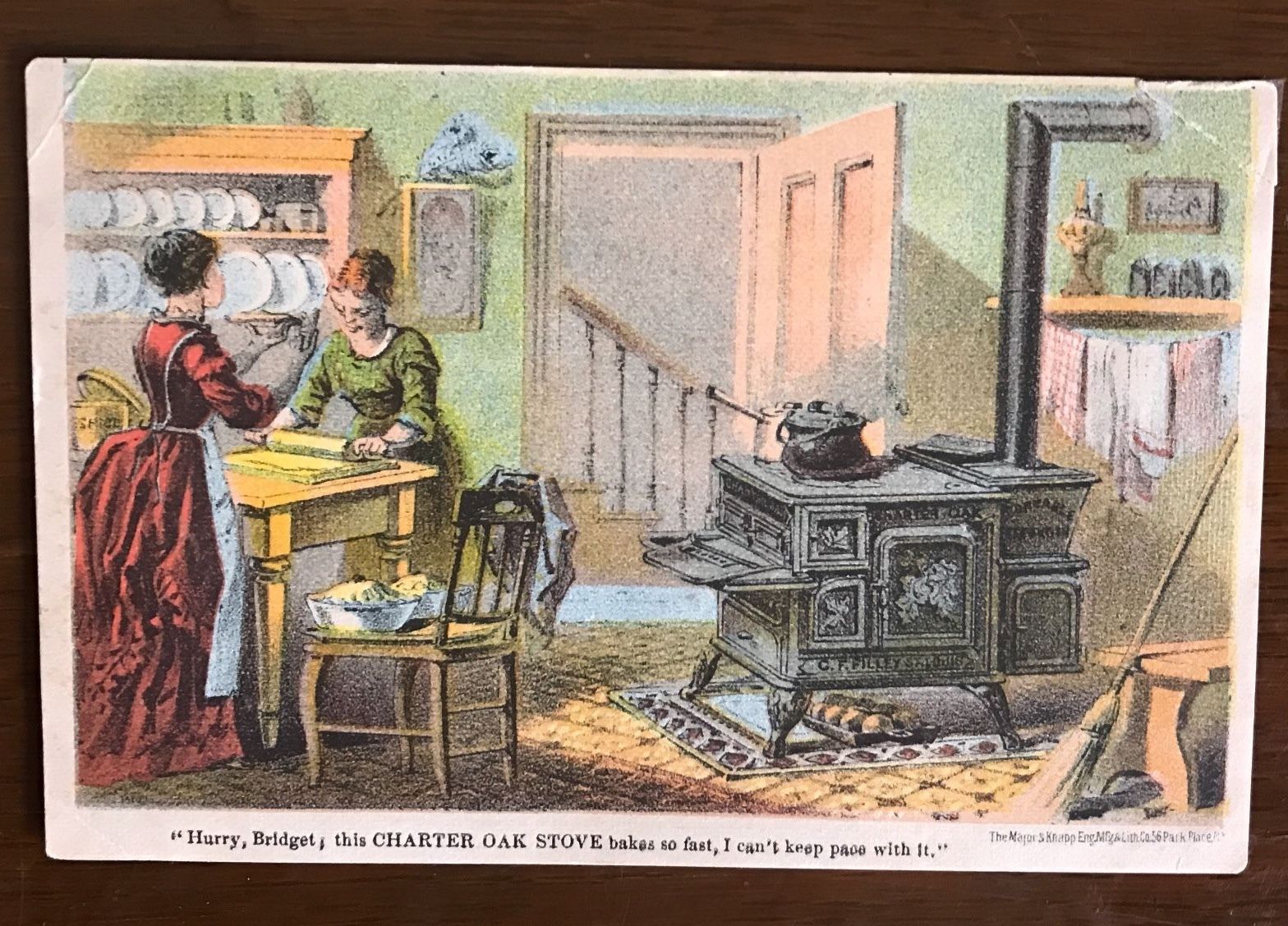 Title (ebay affiliate link): Charter Oak Stove 1880s Victorian Trade Card by Major & Knapp Eng N.Y. / A41
