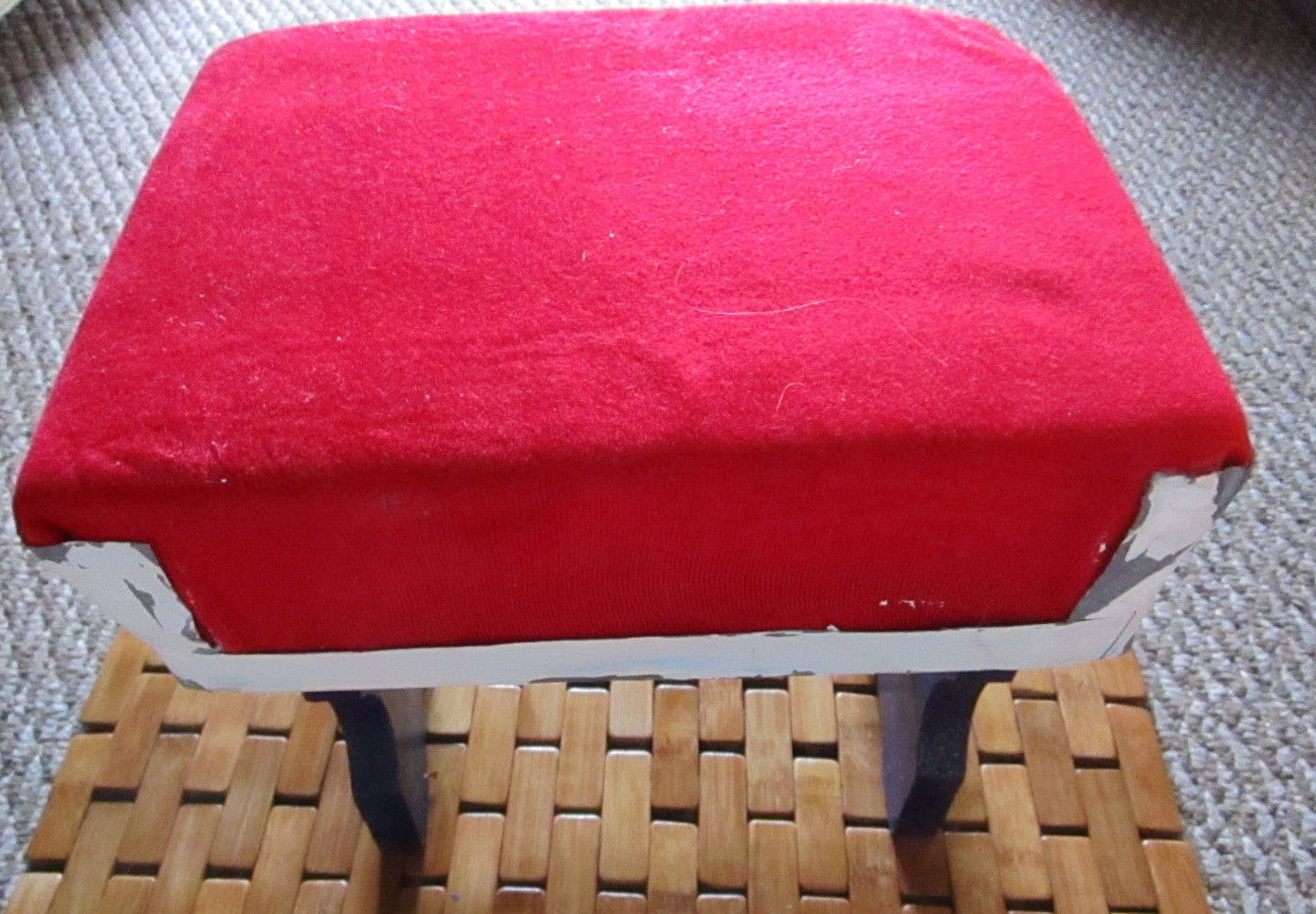 FOOT Stool ONE OF A KIND Primitive Wooden , RED WHITE BLUE UPHOLSTERED PAINTED