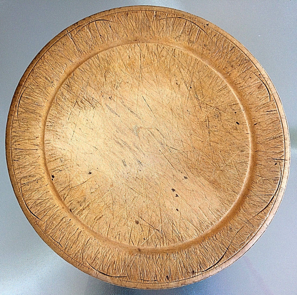 10.25" WOODEN BREAD BOARD ROUND PRIMITIVE ANTIQUE TREEN WARE WOOD