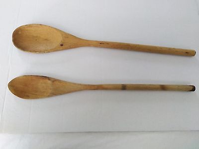 Antique Primitive Lot of 2 Hand Carved Wooden Spoons EUC NO RESERVE