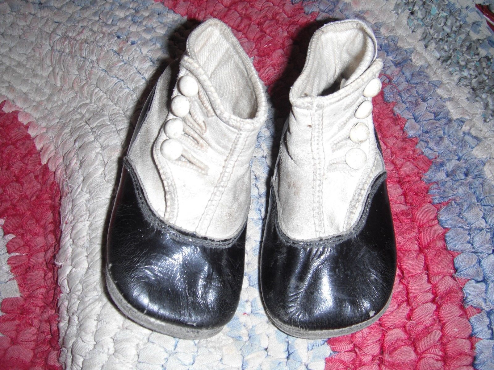Title (ebay affiliate link): ANTIQUE Early AAFA Child Doll black & white LEATHER Side BUTTON SHOES BOOTS Vtg