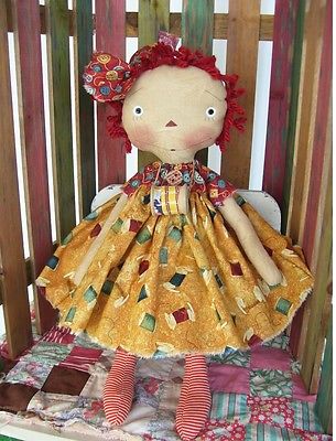 PRIMITIVE RAGGEDY ANN~BUTTONS AND SPOOLS~20in