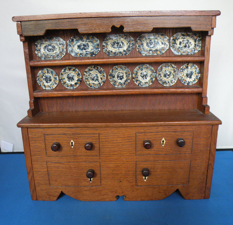 Title (ebay affiliate link): HANDMADE VINTAGE MINIATURE WELSH DRESSER + HANDMADE ''CHINA'' - FOLK ART