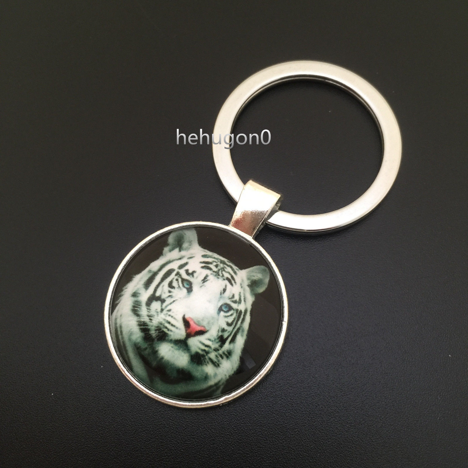 Title (ebay affiliate link): Tibetan silver Vintage Tiger Cabochon Glass Pendant Metal Key Ring New
