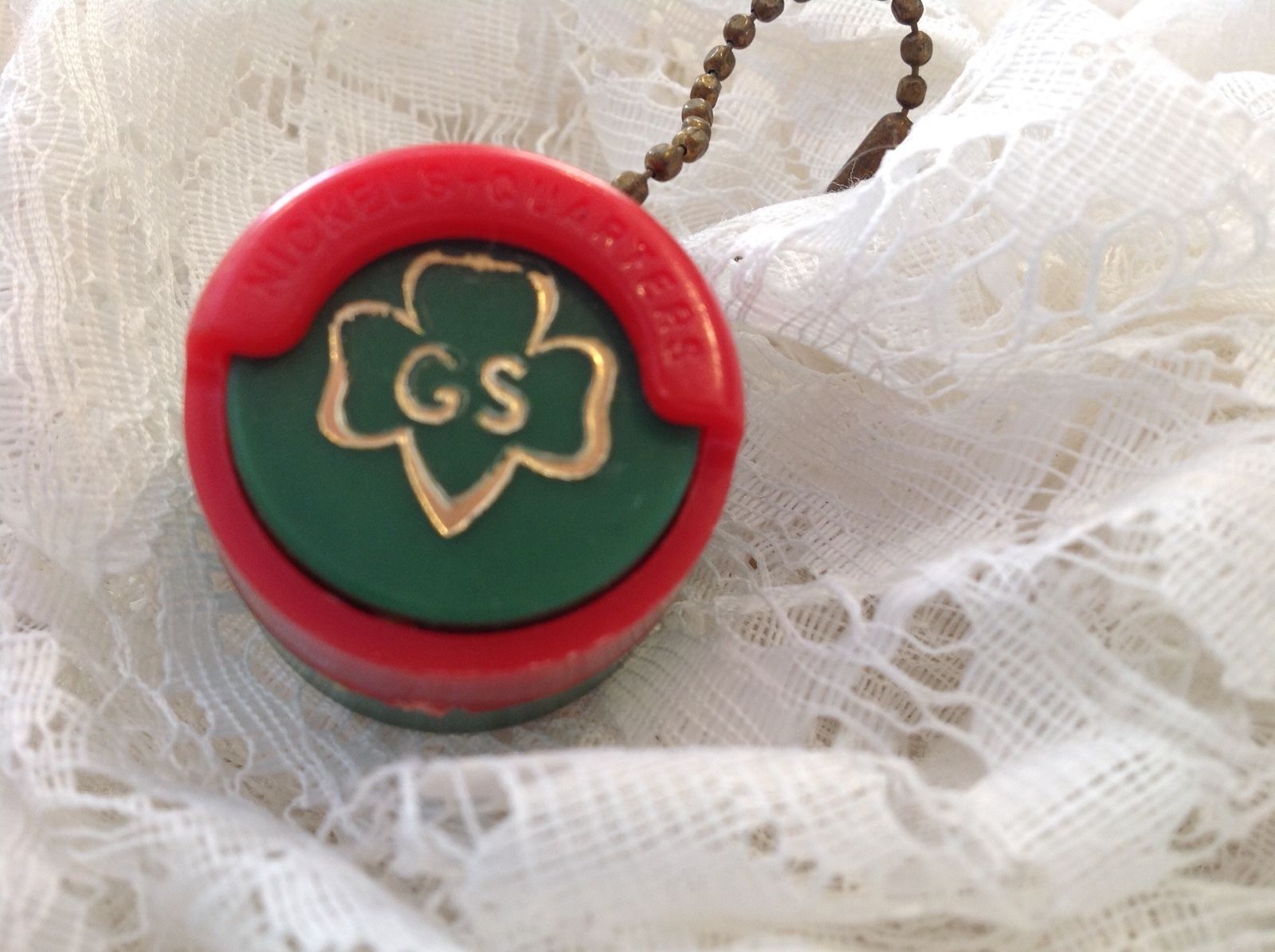 Title (ebay affiliate link): Vintage Girl Scout Spring Loaded Coin Holder Keychain