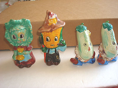ANTHROPOMORPHIC CUCUMBERS AND CORN & CABBAGE SALT & PEPPER SHAKERS JAPAN