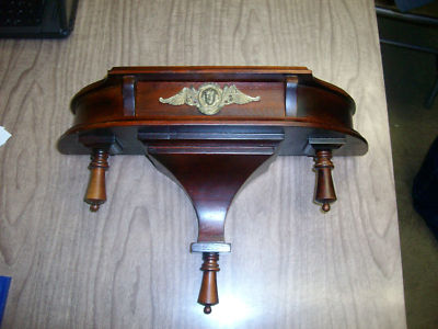 ANTIQUE CLOCK SHELF WITH FINIAL DECO BRASS DRAWER PULL