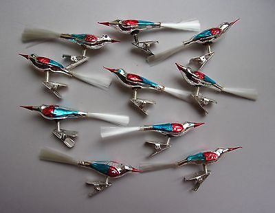 Lot of 10 CLIP ON BLOWN GLASS SILVER SONG BIRDS CHRISTMAS ORNAMENTS