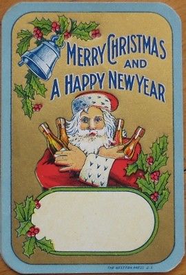 Title (ebay affiliate link): Santa Claus & Wine/Liqueur 1890 Color Litho Label, ''Christmas & New Year''