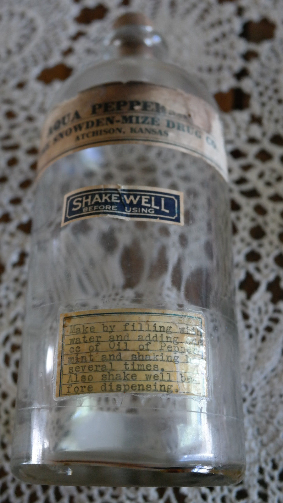 Title (ebay affiliate link): Antique Bottle Aqua Peppermint Cork Stopper Snowden-Mize Drug Co.