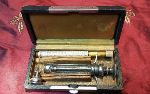 Title (ebay affiliate link): Antique Hypodermic Set Poison Bottle Syringe Strychnine Medical Tool
